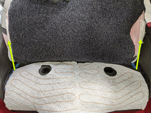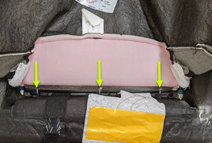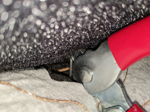 - Use diagonal cutters to cut and remove the rear hog rings (x3) that attach the driver seat cushion trim to the foam pad.