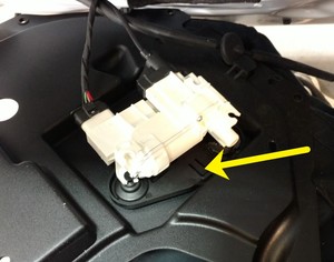 - Release the clips (x3) that attach the LH front door release motor to the LH front door closeout panel, release the release cable, and then remove the release motor from the closeout panel.