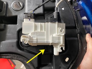 - Release the tab, and then remove the cinch motor from LH front door closeout panel.