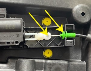 - Install the fir tree clip that attaches the cables to the LH front door.