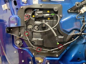 - Release the fir tree clip that attaches the cables to the LH front door.