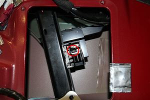 - Use the window master switch to fully lower the LH front window, and then disconnect switch.