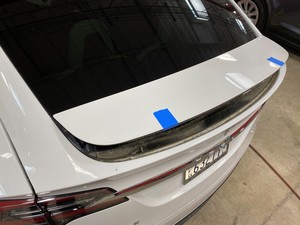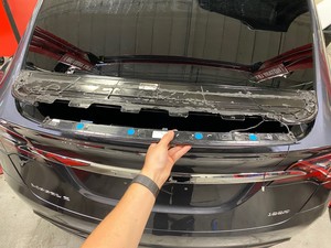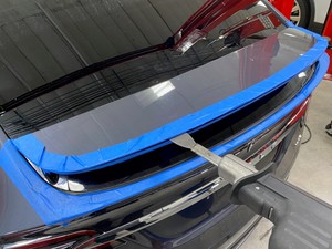 Carefully tape around the edges of the upper active spoiler applique and the liftgate