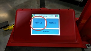 Use the visor/laser to line up the tester perpendicular to the axis between the hood struts