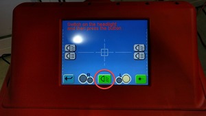 Select the laser icon and adjust the tester horizontal and vertical position to LH headlamp marking