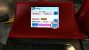 - Select the RH low beam icon and select the low beam button at the bottom of the screen