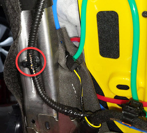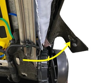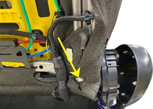 - Install the clip that attaches the far side airbag harness to the front passenger seat frame.