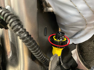 Disconnect the front passenger inboard side airbag connector.