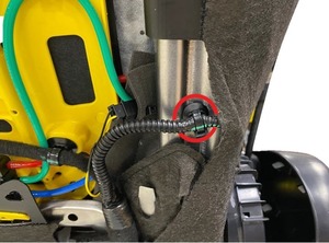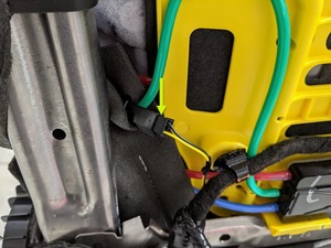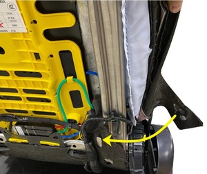- Install the clips (x2) that attach the front passenger seat back suspension harness to the seat.