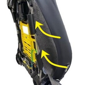 Release the seat back cover elastic straps (x2) from seat frame.