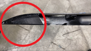 - After the liftgate applique clips are fully secured, apply masking tape to both ends of the liftgate applique, and then secure molding hold down fixtures to both ends of the liftgate applique. Allow the applique to set for 5 minutes.