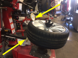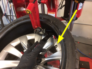 Make sure to position the TPMS sensor opposite the tire machine arm. If the tire has "outside", "side facing outwards", or a direction of rotation arrow on the sidewall, ensure that the tire is oriented properly