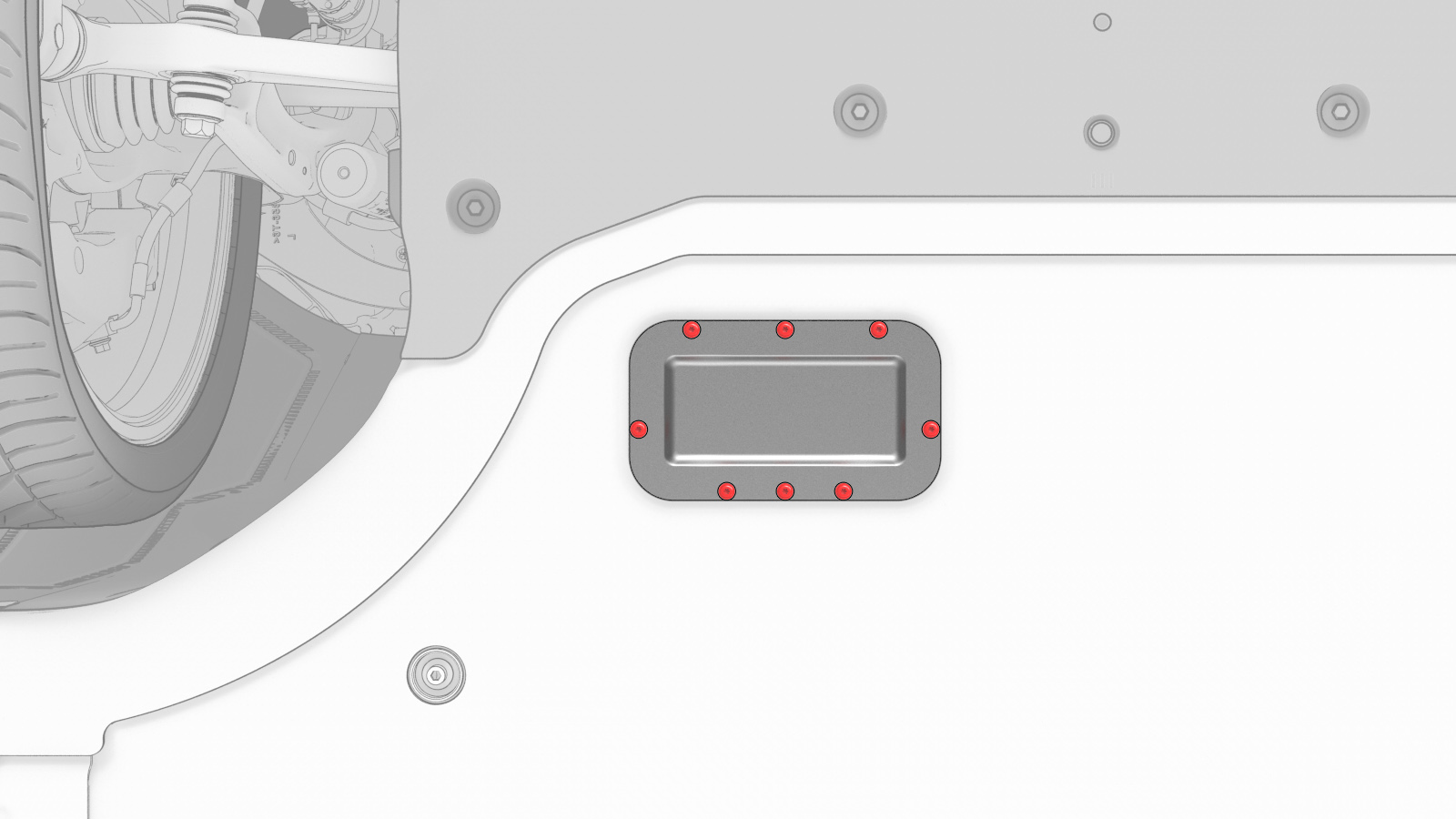 | Bolts (x8) that attach the pyrotechnic fuse cover to the HV battery |