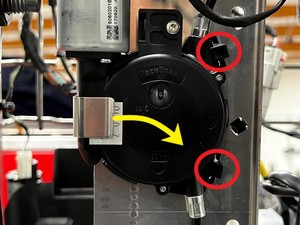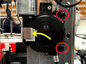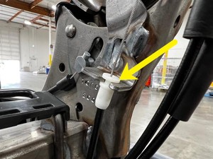 - Position the RH 2nd row EZ entry release actuator assembly into the bracket, and then secure the tabs (x2) that attach the actuator assembly to the seat assembly.