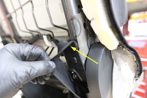 - Secure the elastic bands (x2) at the RH 2nd row seat inboard outer hinge cover.