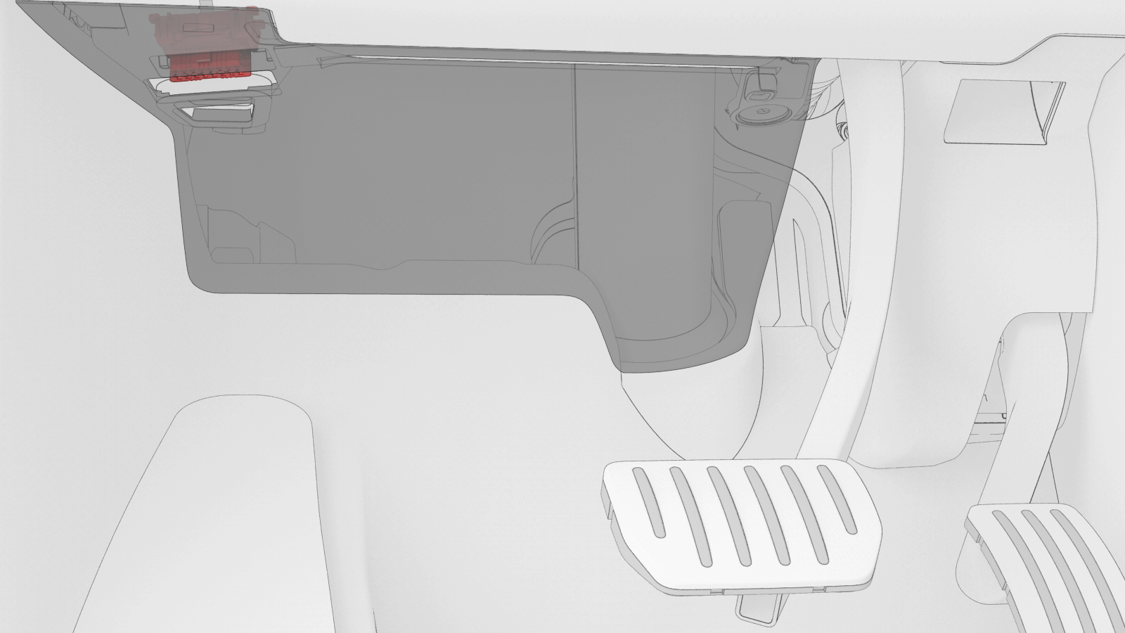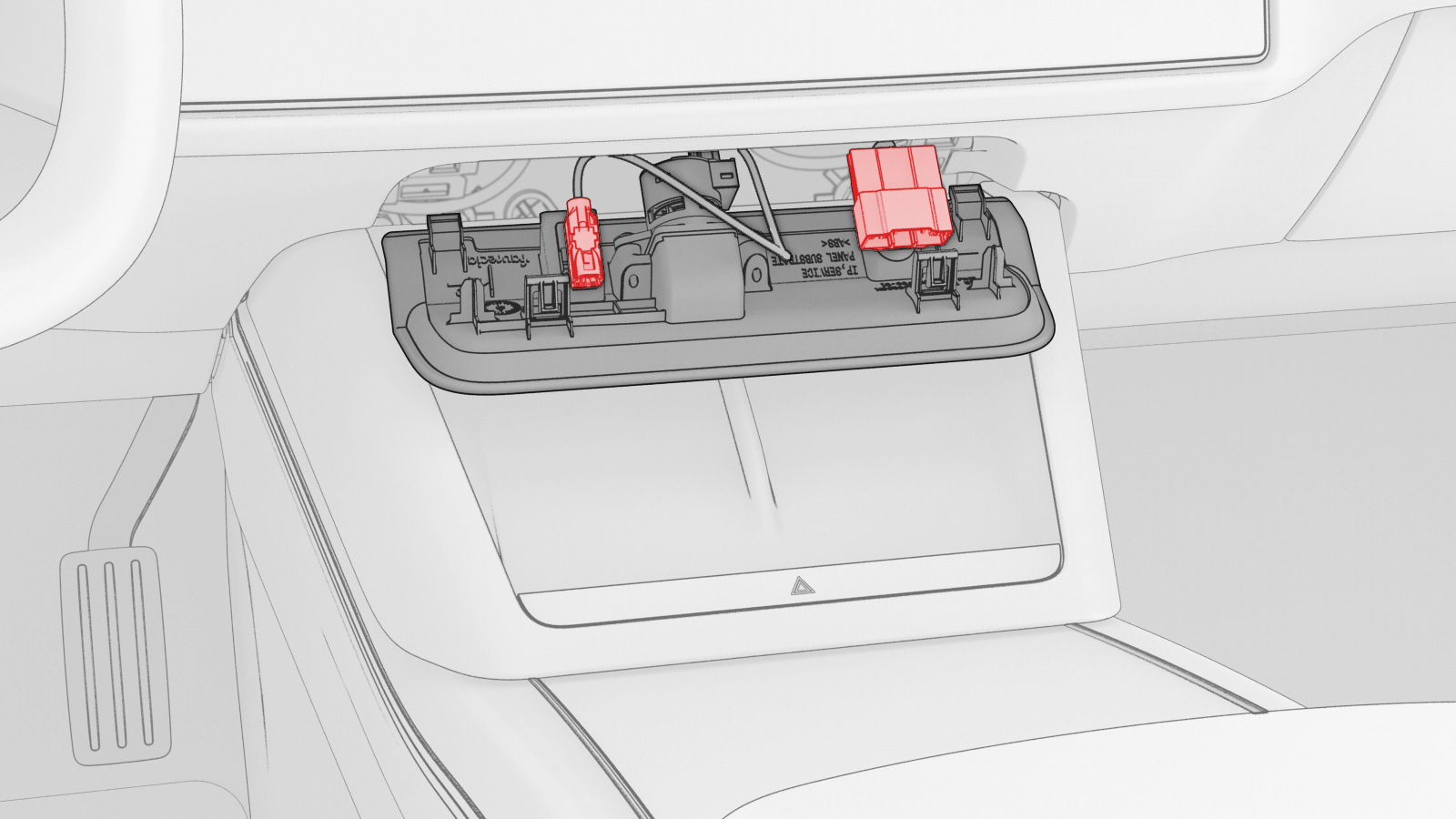 The diagnostic port in Model X is located under the touchscreen, behind the IP service panel. To access the diagnostic port, release the tabs (x4) at each corner of the IP service panel.