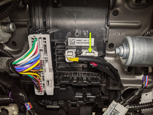 - Release the connector lock, and then disconnect the driver seat controller electrical connector.