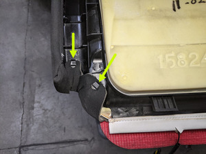 - Release the tabs (x4) that attach the 3rd row cushion cover to the rear corners of cushion substrate.