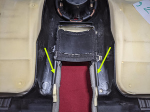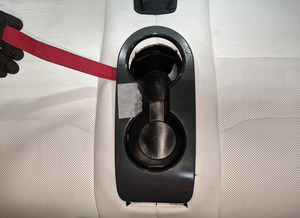 - Install the J-hooks (x2) that attach the 3rd row cushion cover to the cup holder.