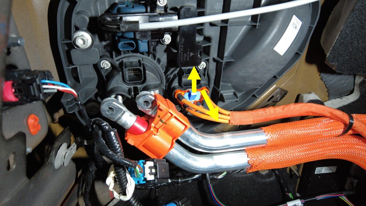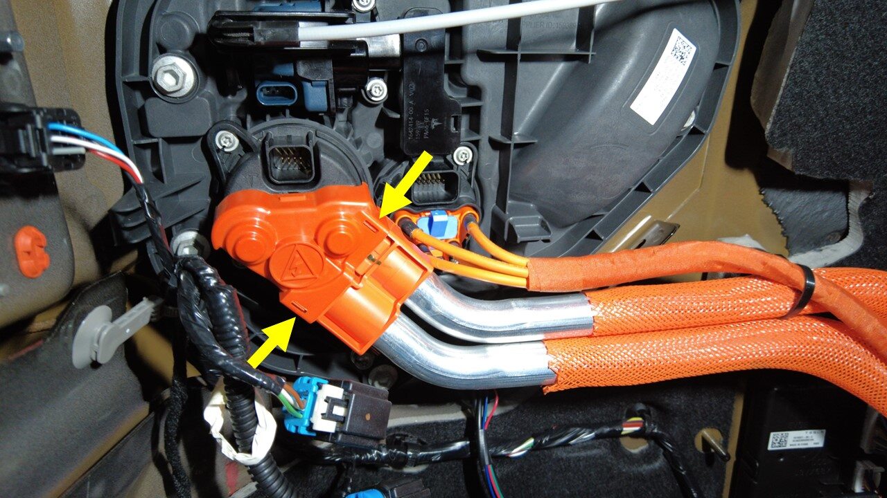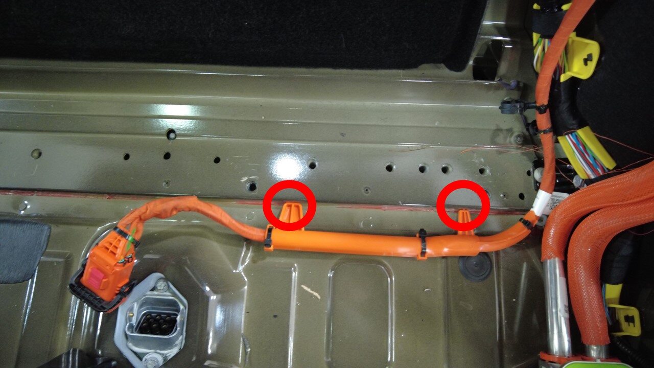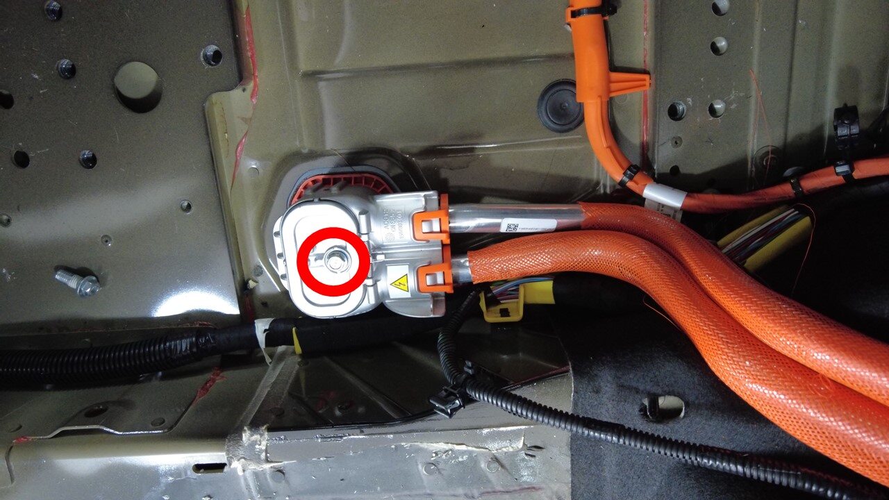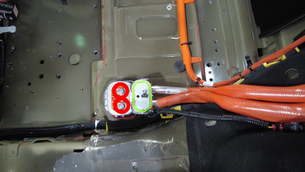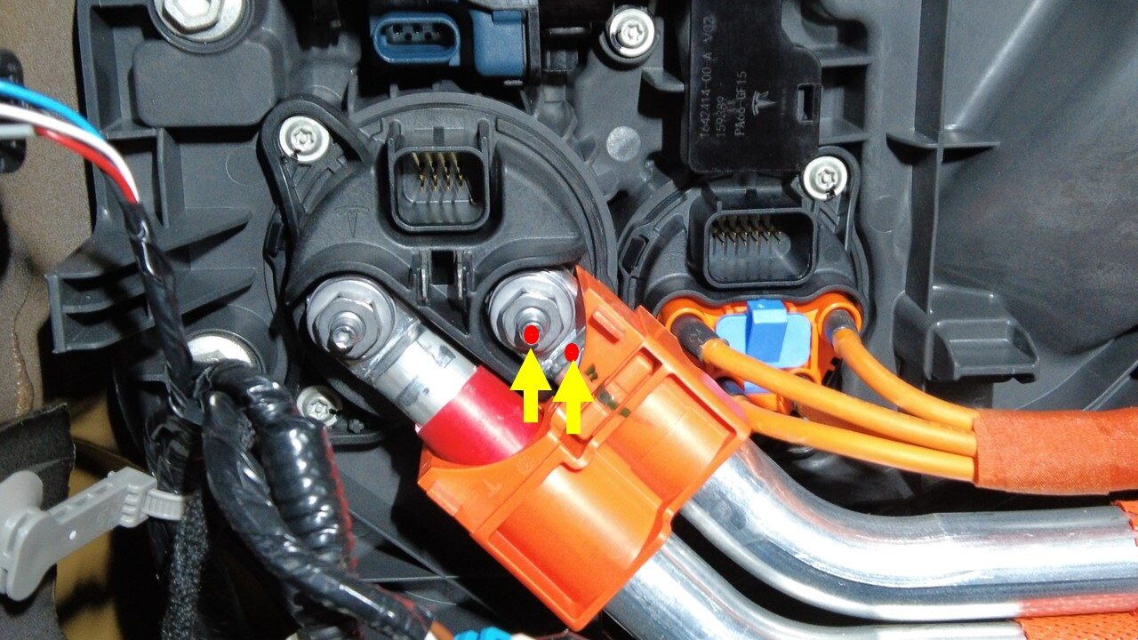 highlighted locations of each HV joint from the HV busbar lead to the charge port