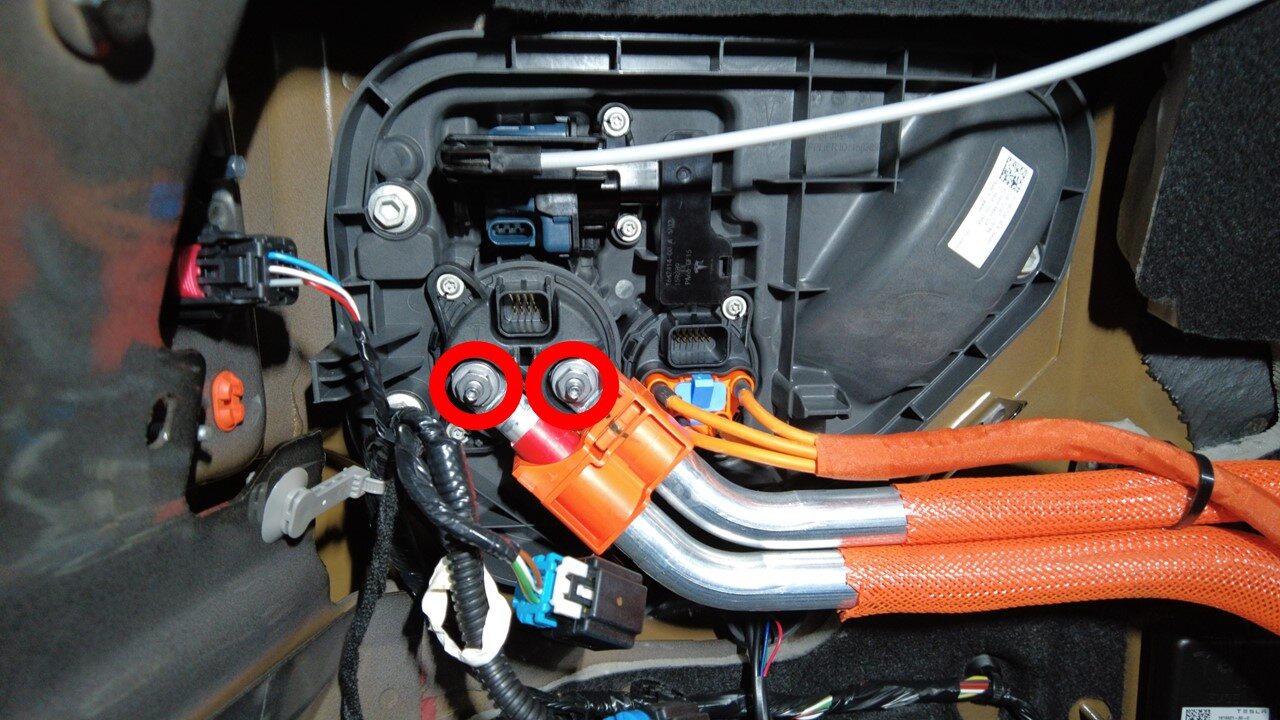| Nuts (x2) that secure the charge port busbar to the charge port |