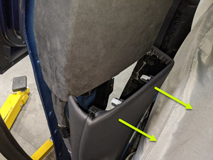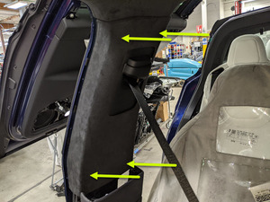 Release the clips (x3) and magnets (x2) that attach the RH upper B-pillar to the body, and then disconnect the RH falcon wing door connector.