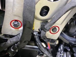 Position the closing panel on the vehicle, and then install the bolts (x8) that attach the closing plate to the vehicle.