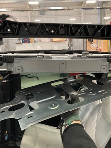 - Install the clips (x3) that attach the satellite radio antenna harness to the closing plate.