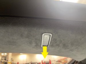 - Remove the LH rear coat hook bezel that attaches the hook to the headliner, and then remove the hook from the vehicle.