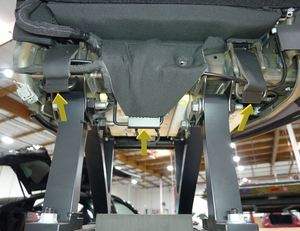NoteStarting from the front, lift carpet over harpoon brackets, Fold back enough to access rear seat components