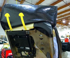 - Remove masking tape from the RH lower C-pillar and from the race tracks