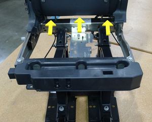 NoteSlide trim subassembly over headrest bracket down to seat controller bracket