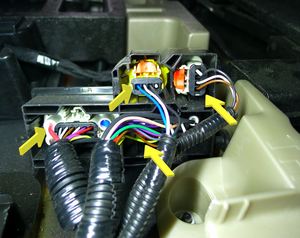 Note2x connectors, 1x clip, Release clip at seat belt reminder harness