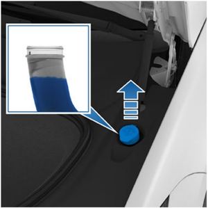 - Fill the windshield washer reservoir until the fluid level is visible just below the filler neck.
