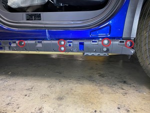 Install the bolts (x4) that attach the LH rocker panel to the body.