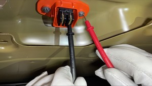NoteVerify meter is zeroed out before performing measurement, Measure single cable. Verify ammeter is installed in correct direction. If current > 0.5A do not proceed with disconnecting HV connector. In this case, start vehicle electrical isolation again to make sure that all was properly shut down.If current < 0.5A, Ok to disconnect and check voltage at HV plug on the battery side.
