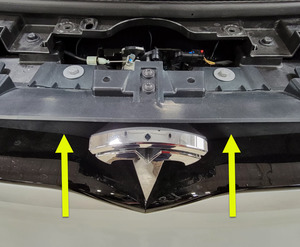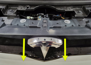 front tesla badge to the vehicle, and then remove the badge from the vehicle.