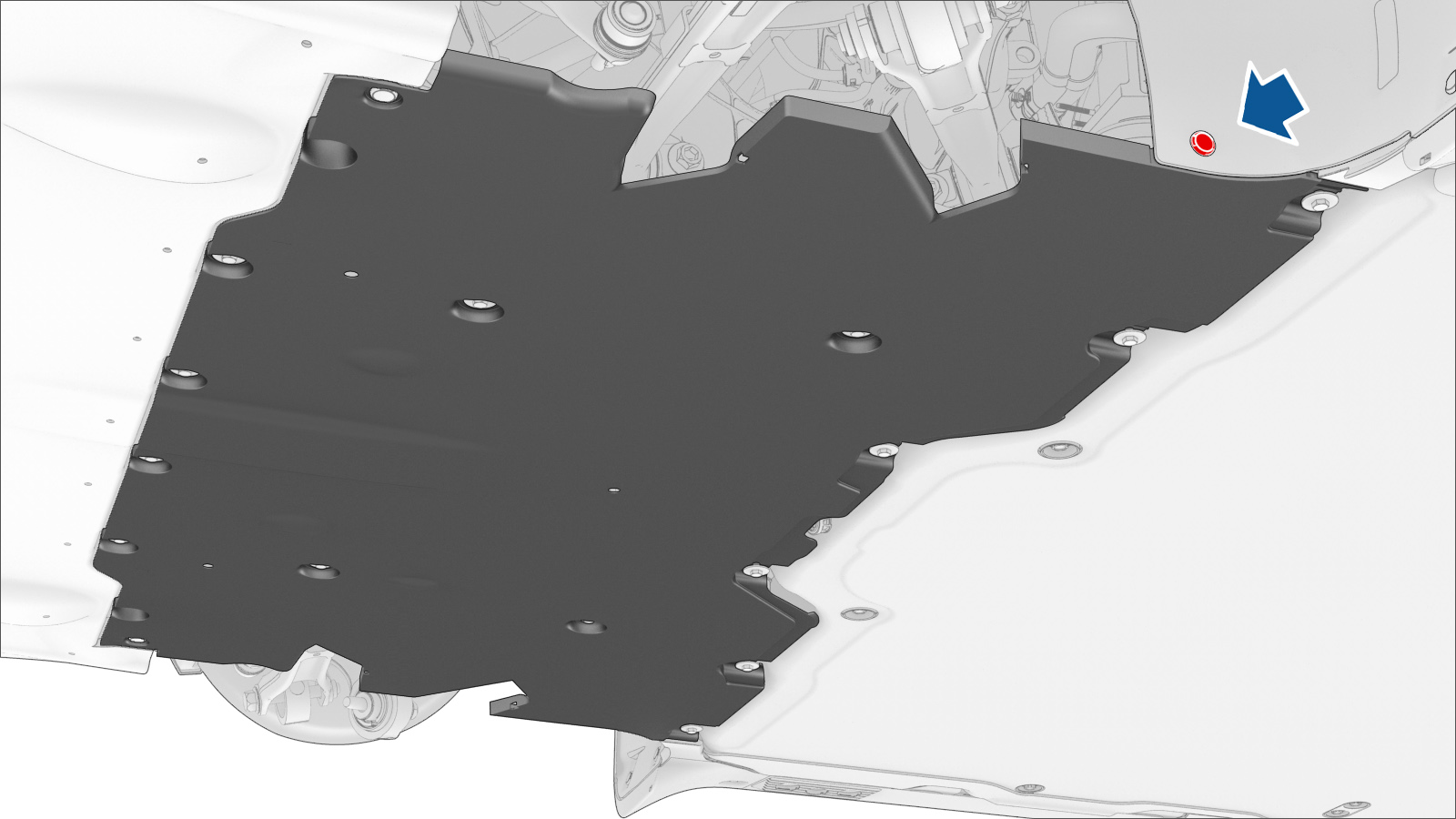 mid aero shield panel to the rear subframe, and then remove the panel from the