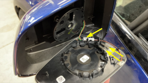 - Connect the harness electrical connectors (x3) to the rear of the LH door mirror glass.