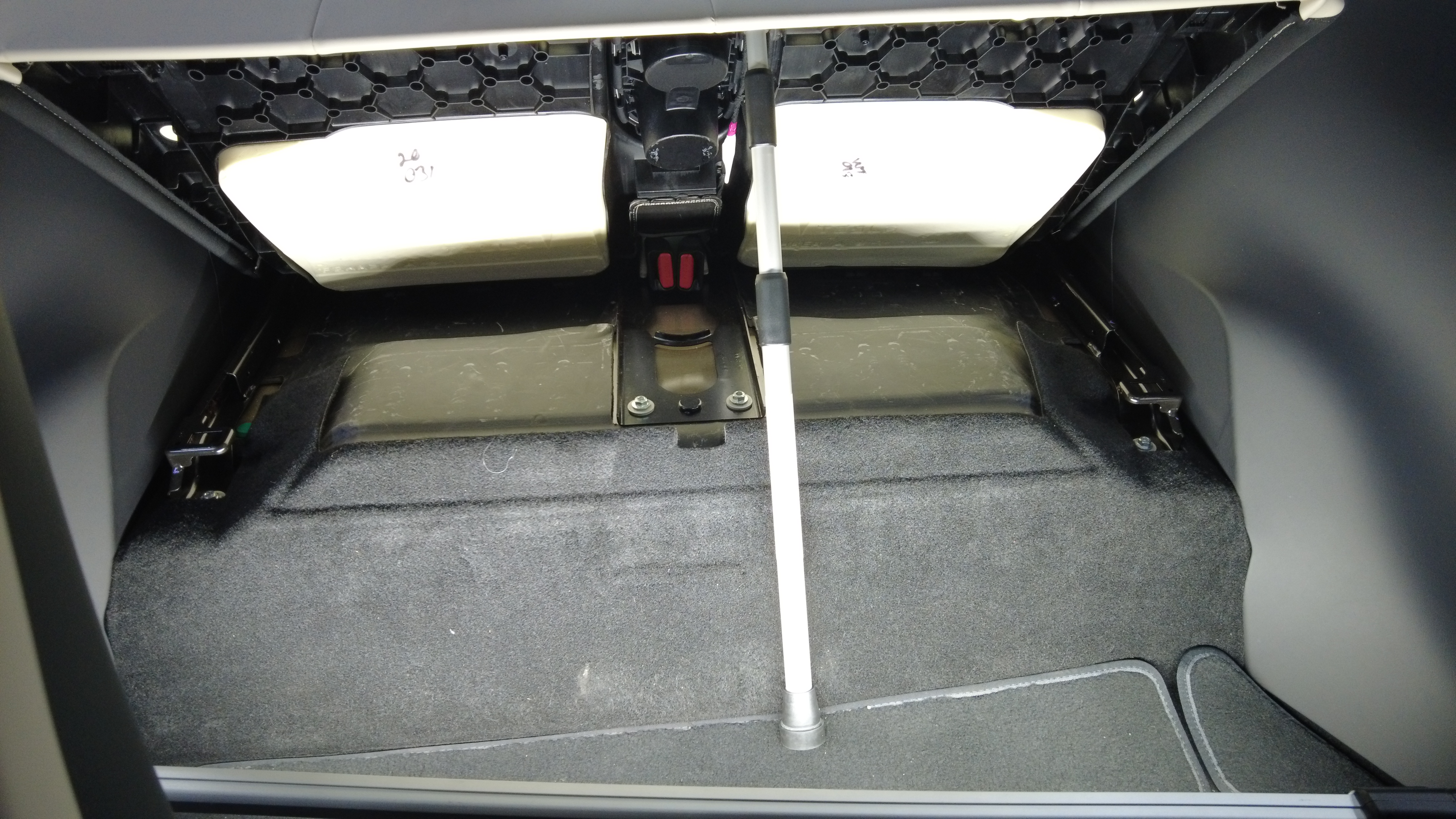 - Secure the rocket clips (x2) into the LH and RH latches to install the 3rd row seat cushion.