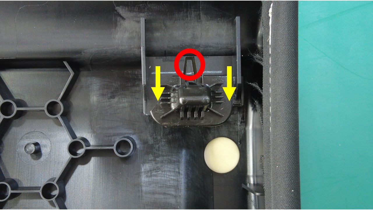 NoteThe clips locate on both ends of the seat cushion.