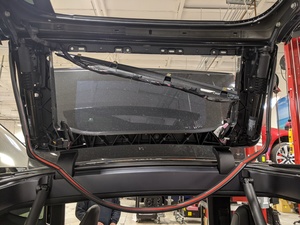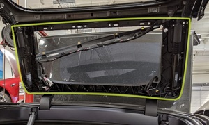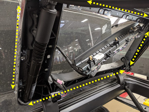 - Remove the double sided tape from the LH upper rear door seal sections while installing, seat the inner corners first, press firmly to wet-out the seal, and then finish installing the edges.