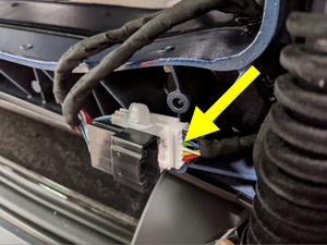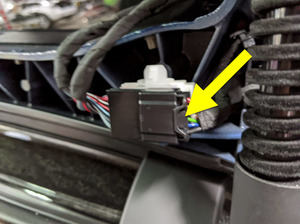 - Disconnect LH rear door front secondary strut connector.