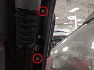 - Connect LH rear door front secondary strut connector.