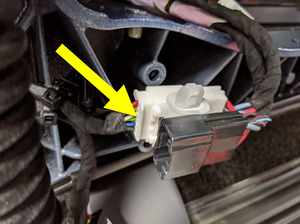 - Disconnect the LH rear door rear primary strut connector.