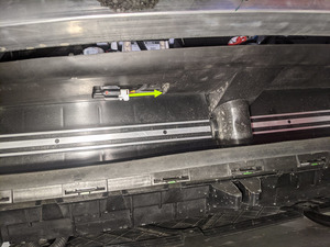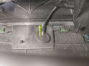 - Disconnect the ambient air temperature sensor, and then push the grommet through the front end carrier.