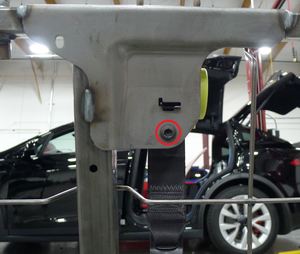 Remove and discard the bolt that attaches the center 2nd row seatbelt retractor to the seat frame, and then remove the retractor from the seat frame.