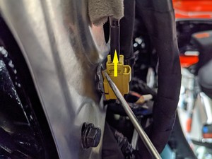- Carefully disconnect the ultrasonic sensor from the center spine applique.