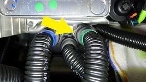 - Remove coolant overflow hose from coolant container.
