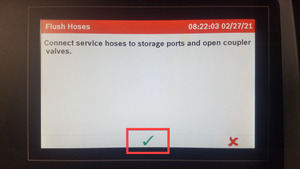 NoteTouch time only, Connect couplers to machine, Open couplers by turning clockwise, Using Main Menu > Next > Menu > Flush hoses > Verify hose connection, Machine will chime once process is complete.